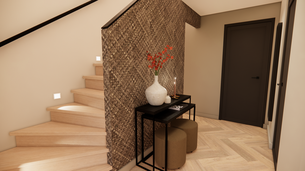 Dit op maat ontworpen interieur omarmt perfect passend vakmanschap. Op maat gemaakte meubelstukken versmelten naadloos met de ruimtes, versterken het design en creëren een gevoel van eenheid en verfijning. Elk element getuigt van persoonlijk vakmanschap, waardoor functionaliteit en esthetiek hand in hand gaan.